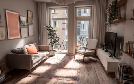 Uređenje home office prostora u dnevnoj sobi sa radnim stolom ispred prozora, prirodnim svetlom i toplim tonovima enterijera